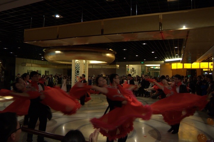 几曲风格迥异的开场舞曲很快过去,其中,在进行恰恰一曲时,舞者们赢得台下观众一阵阵喝彩。之后,便进入了人尽皆知,关注度极高的2010级班级展示环节。按照之前所抽签决定的顺序,首先上场的1004班没有让观众们失望,带来了一场精彩的平四展示,并通过最后鲜花动作的顶格,使舞会又上了一个高潮,并最终赢得了班级比赛的第一名。之后其他班级展示,以及其间所穿插的自由舞会环节,在场师生们都积极参与,整个舞池的喝彩声也是一浪高过一浪,热闹非凡。