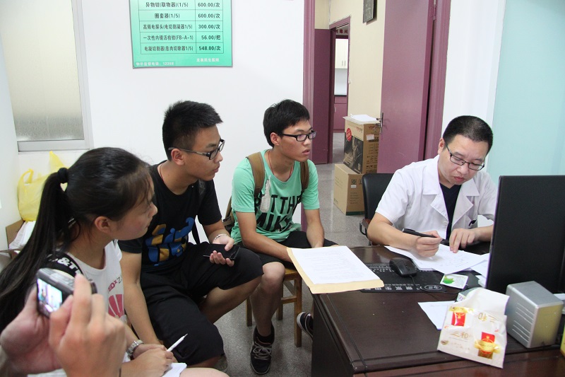 顶着毒辣的太阳,小分队继续向民生医院出发。他们要拜访的季炳招医生便是一位业务繁重的妇科专家。季奶奶非常热情,不仅和聊了她当年以工农兵身份进入浙江医科大学的特殊求学经历,还介绍了民生医院的创办经历。最后季奶奶还热情的还和小分队合影,并拥抱鼓励他们努力学习。在民生医院,小分队的队员们还找到了另外一位浙大的校友——龙泉民生医院消化内科张晓波主任。他也是民生医院的创办人之一。他和季奶奶一样也有很多的病人,在做完一个内科手术后,他顾不得休息便和队员们聊了起来。张医生一开始便很热情地介绍了在县城医院工作的医生的一些工作现状,接下来聊了他在来到民生医院之前的经历。张主任之前在市人民医院里面做了十年的消化内科,还当上了主任,不过后来他认为私立医院有发展前景,就和其他三个医生一起开了民生医院。民生医院从最初十几个人发展到了现在的九十几个人,也是一名医生别样的创业史。