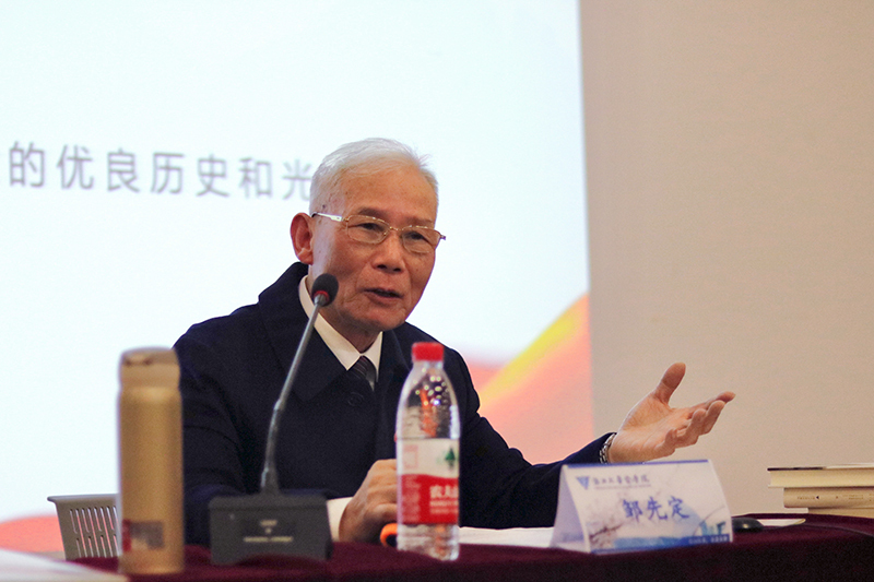 谈及浙江大学的优良历史和光荣传统,邹先定教授向同学们推荐了《我心中的华家池》一书,并表示华家池校区悠久深厚的历史文化积淀是无可比拟的,是浙江大学的根和魂。邹教授以“中国共产党人的精神谱系和光荣传统在浙大的实践和发扬”为核心,列举了五四运动、北伐战争、九一八事变、一二九运动、解放战争、抗美援朝战争等重大历史时期,浙大华家池学子挺身而出、不畏牺牲的事迹,强调了在社会主义革命和建设时期、改革开放和社会主义现代化建设新时期、中国特色社会主义新时代等不同时代下,华家池这片热土孕育的科学家们为祖国做出的诸多贡献。他指出在浙大的历史中,中国共产党人的精神谱系如一根红线一以贯之,那些可歌可泣、如火如荼的革命斗争、改革创新的事迹,是浙大的光荣传统,亦是华家池的光荣传统。