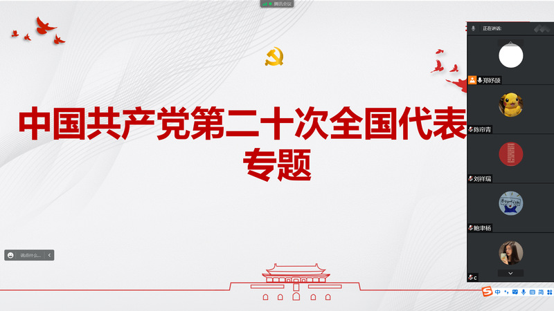 基础医学(求是科学班)2101团支部将主题学习开在了云端。在线上平台,团支书对大会报告内容进行了介绍,进一步分享了对大会精神和习近平总书记系列重要讲话精神的学习,并邀请班主任老师结合自身多年学习和工作经历为同学们进行指导。同学们纷纷发言,阐述了自己对党的二十大报告的学习理解,并表示要心怀“国之大者”,踏踏实实做好基础医学研究,将论文写在祖国大地上。