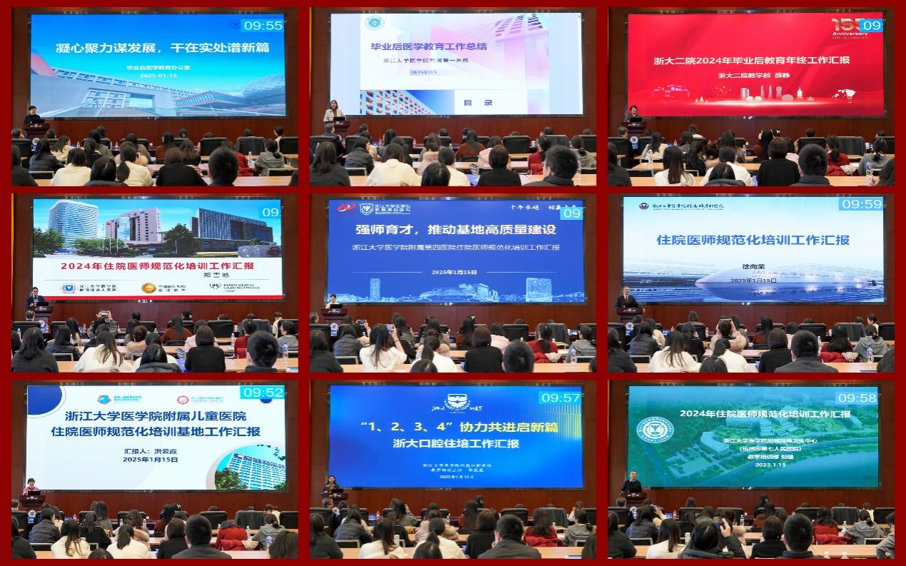 毕业后医学教育办公室作年度工作报告,总结了2024住院医师规范化培训和临床医学博士后工作,提出了2025年工作重点。各附属医院教学部分别年度工作总结,展示了各院的“十佳带教老师”“优秀住院医师”的卓越业绩,分享了“十佳专业基地”的特色和做法。